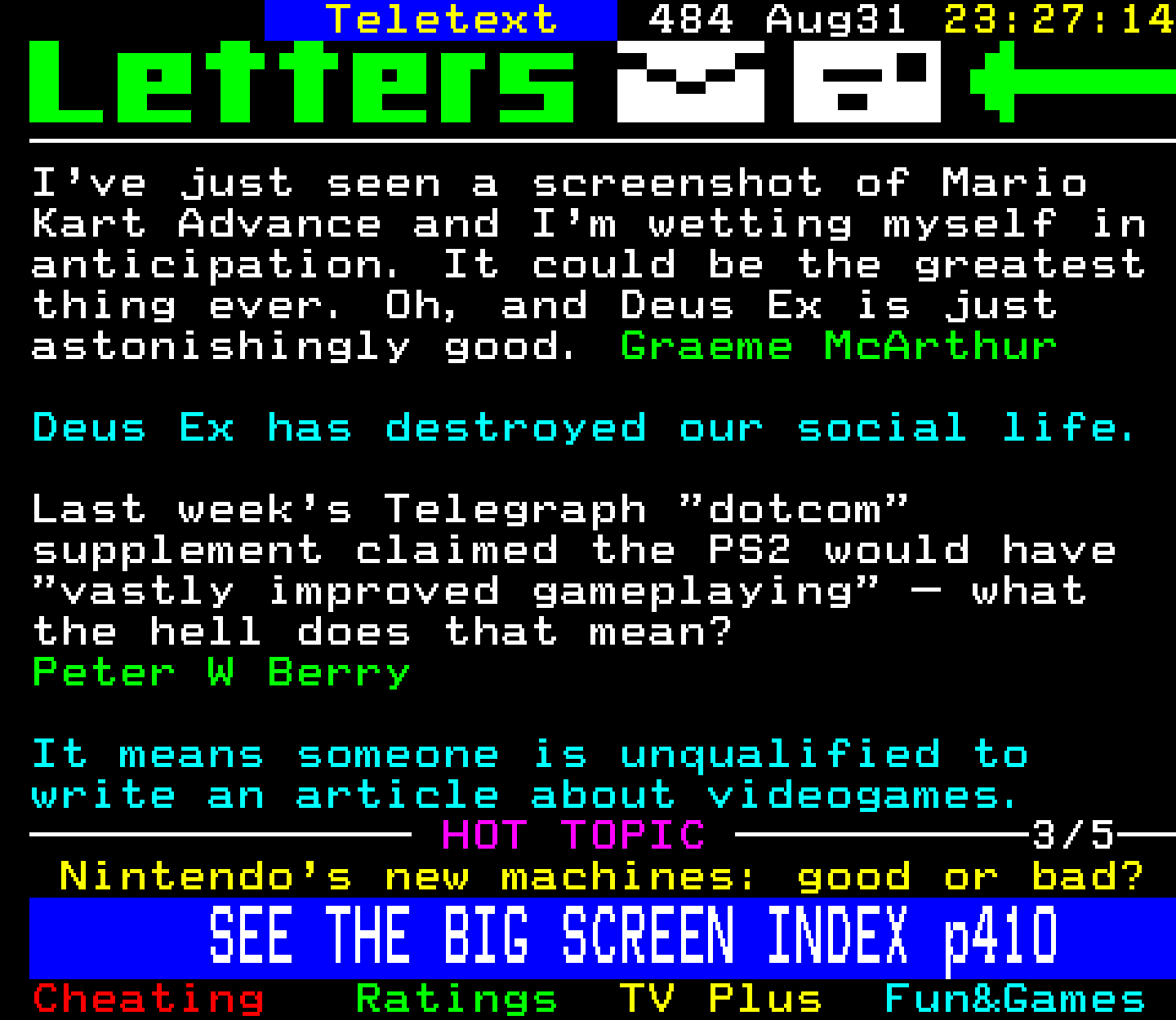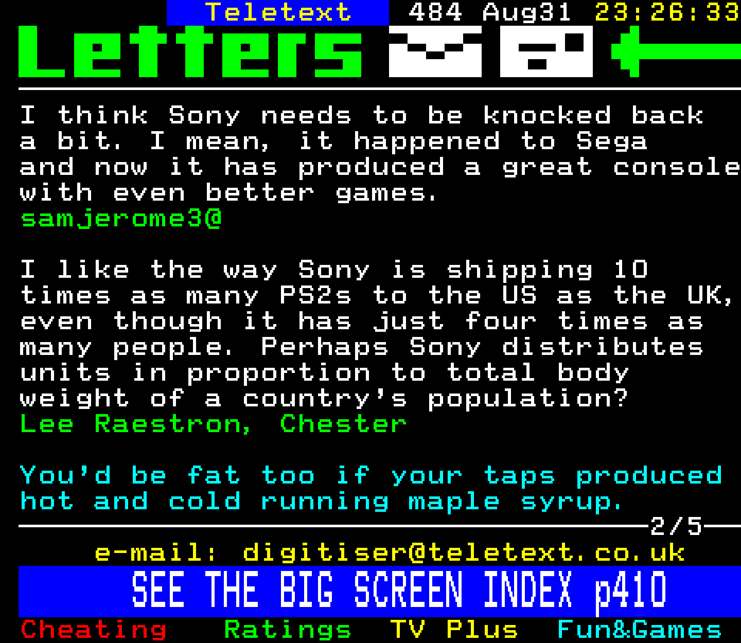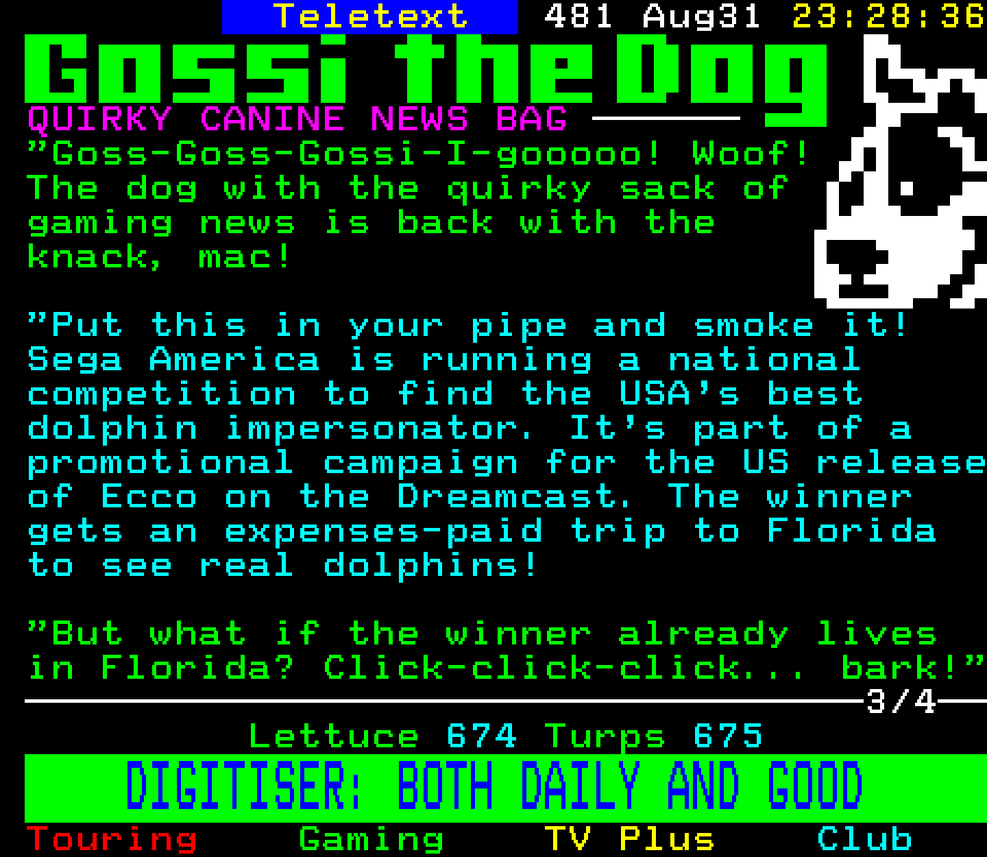 Do you have any full screenshot images of Digitiser that you'd like to see included in this archive? I'd just love to include them here - please email (superpage58@gmail.com) and the Digi community will be eternally grateful. Hey: even photos of your old TV showing the teletext page are good to be included!