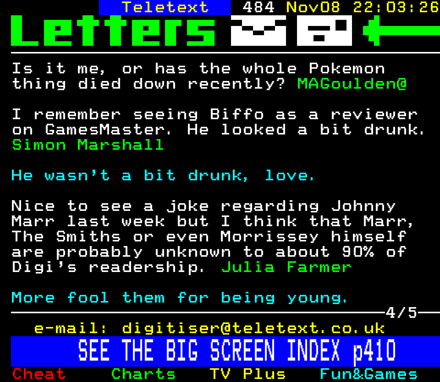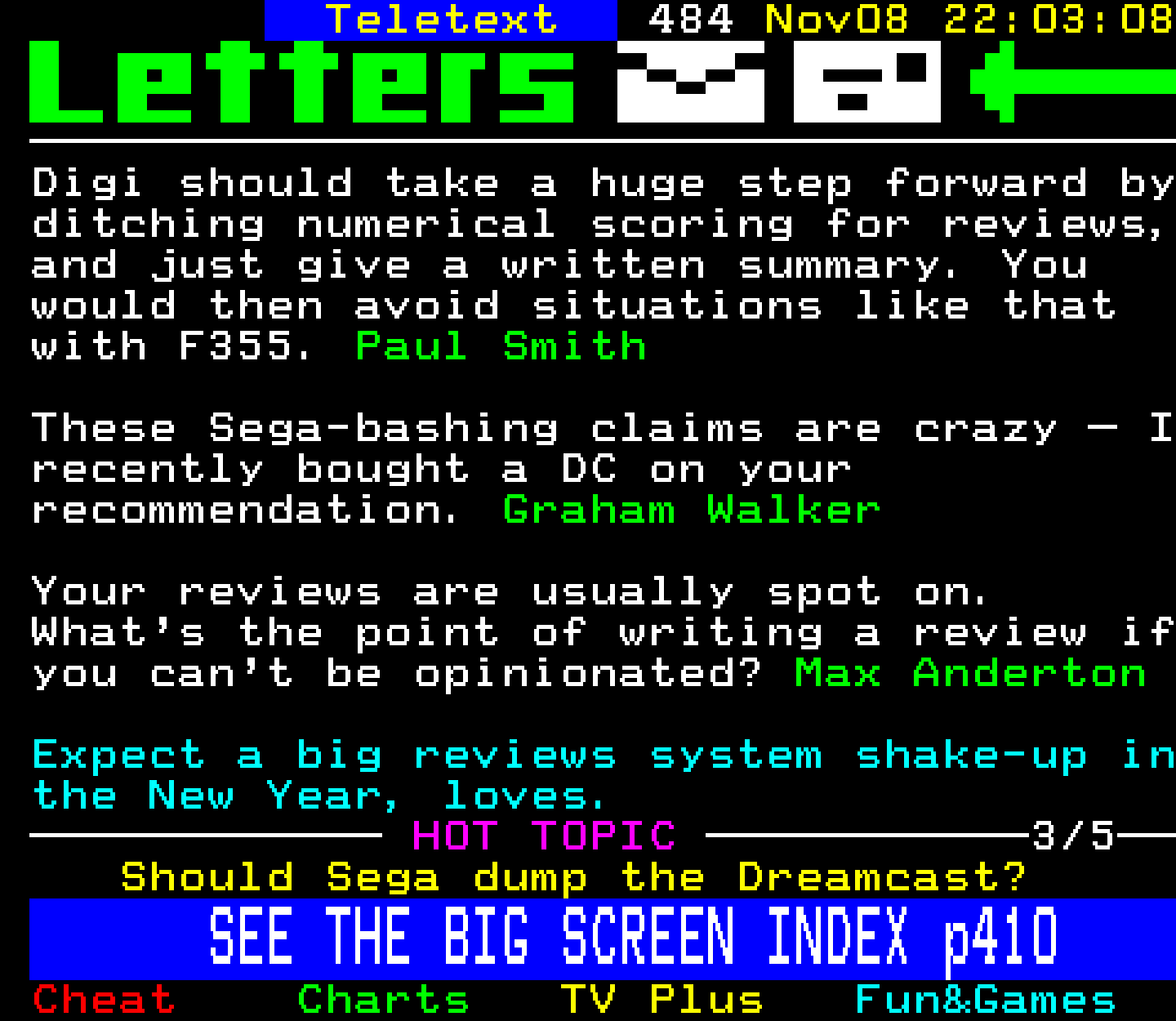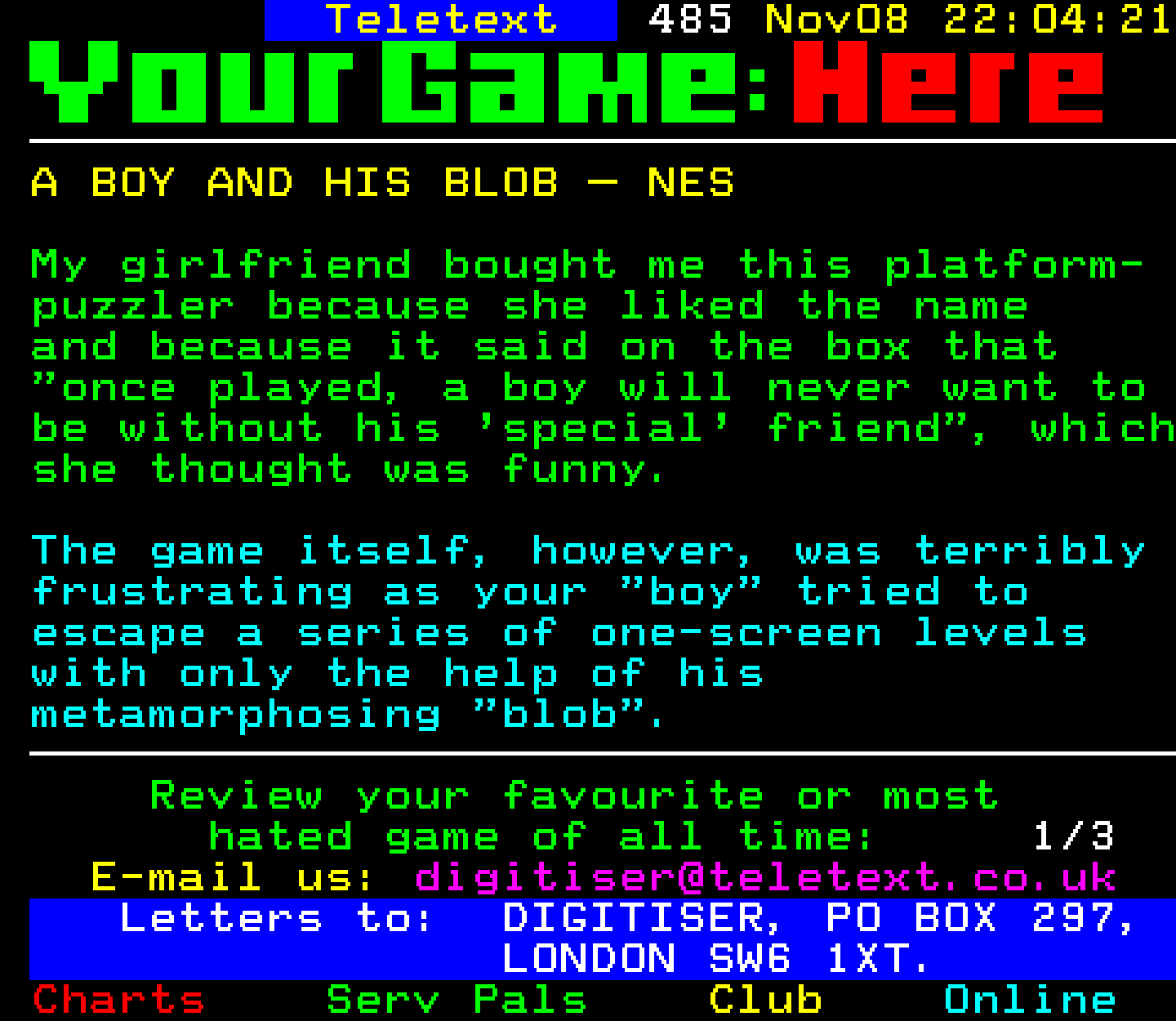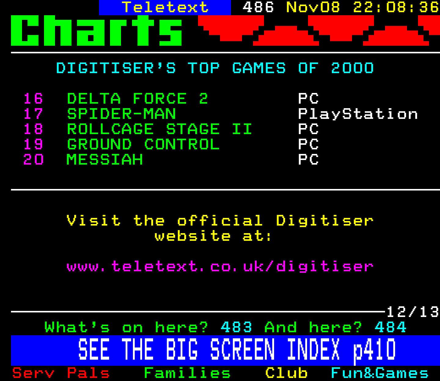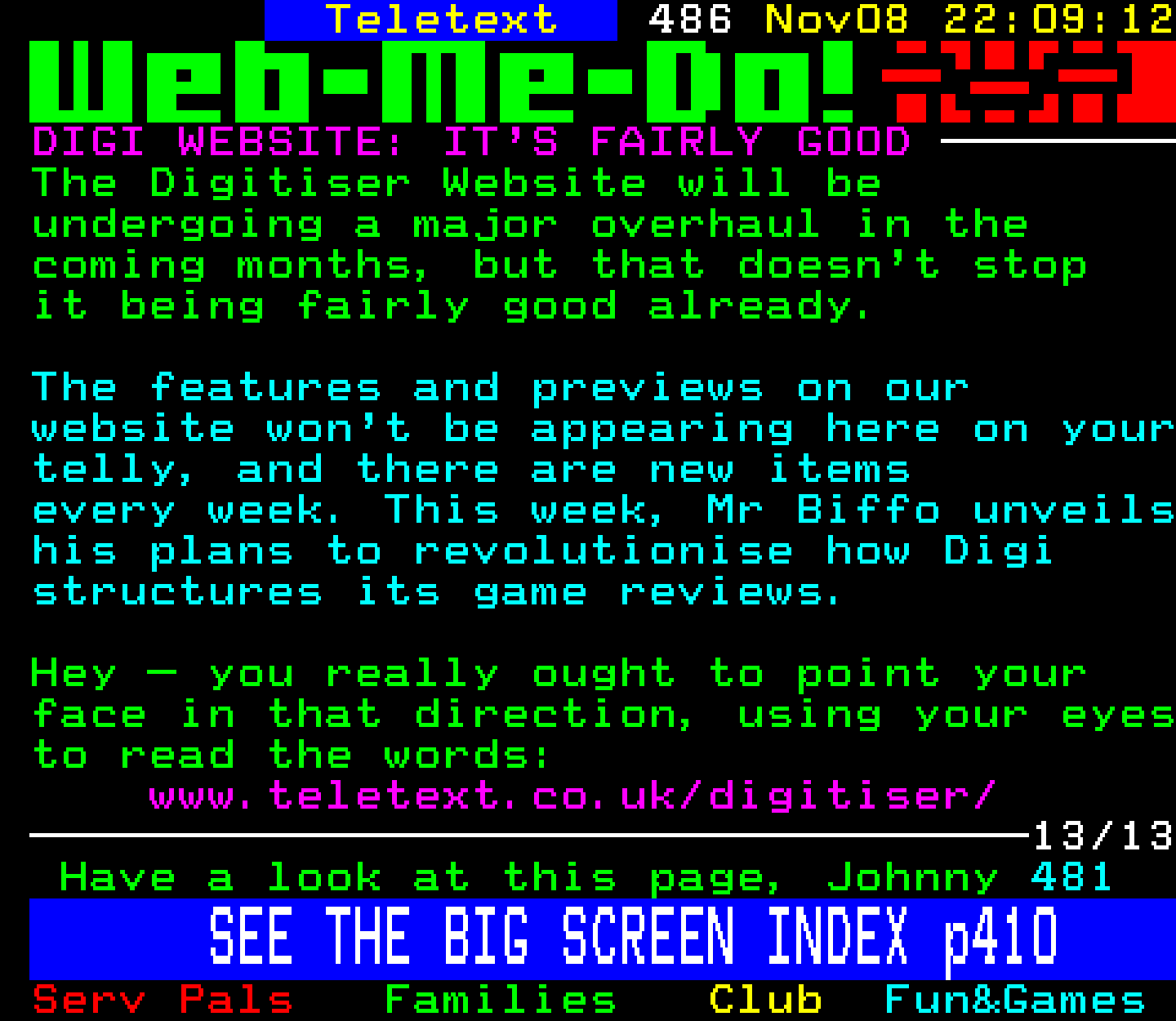 Do you have any full screenshot images of Digitiser that you'd like to see included in this archive? I'd just love to include them here - please email (superpage58@gmail.com) and the Digi community will be eternally grateful. Hey: even photos of your old TV showing the teletext page are good to be included!