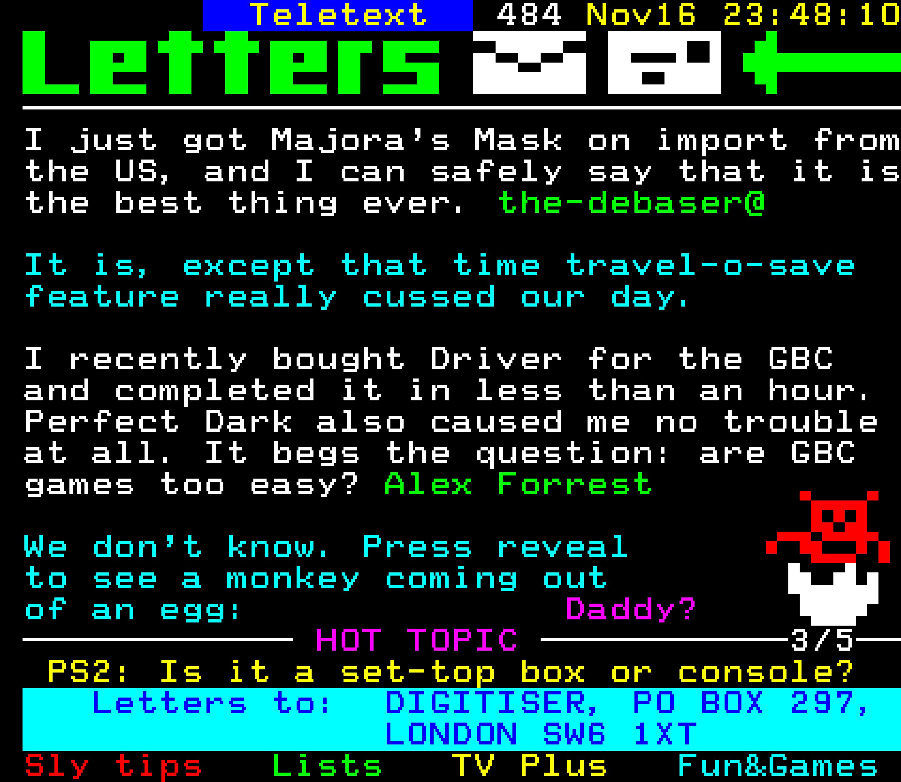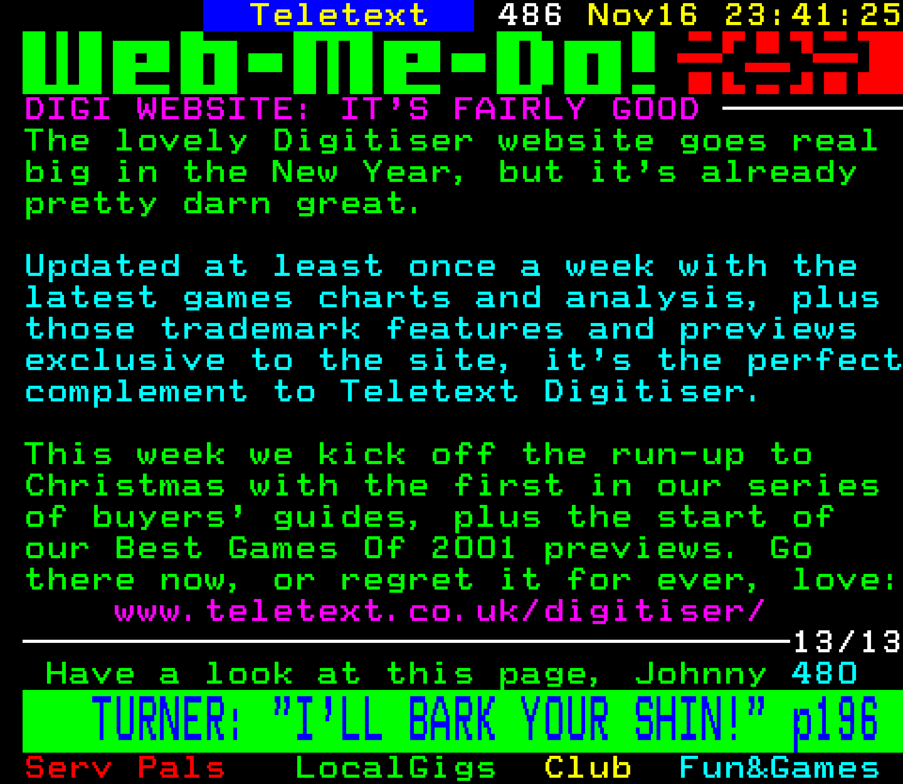 Do you have any full screenshot images of Digitiser that you'd like to see included in this archive? I'd just love to include them here - please email (superpage58@gmail.com) and the Digi community will be eternally grateful. Hey: even photos of your old TV showing the teletext page are good to be included!