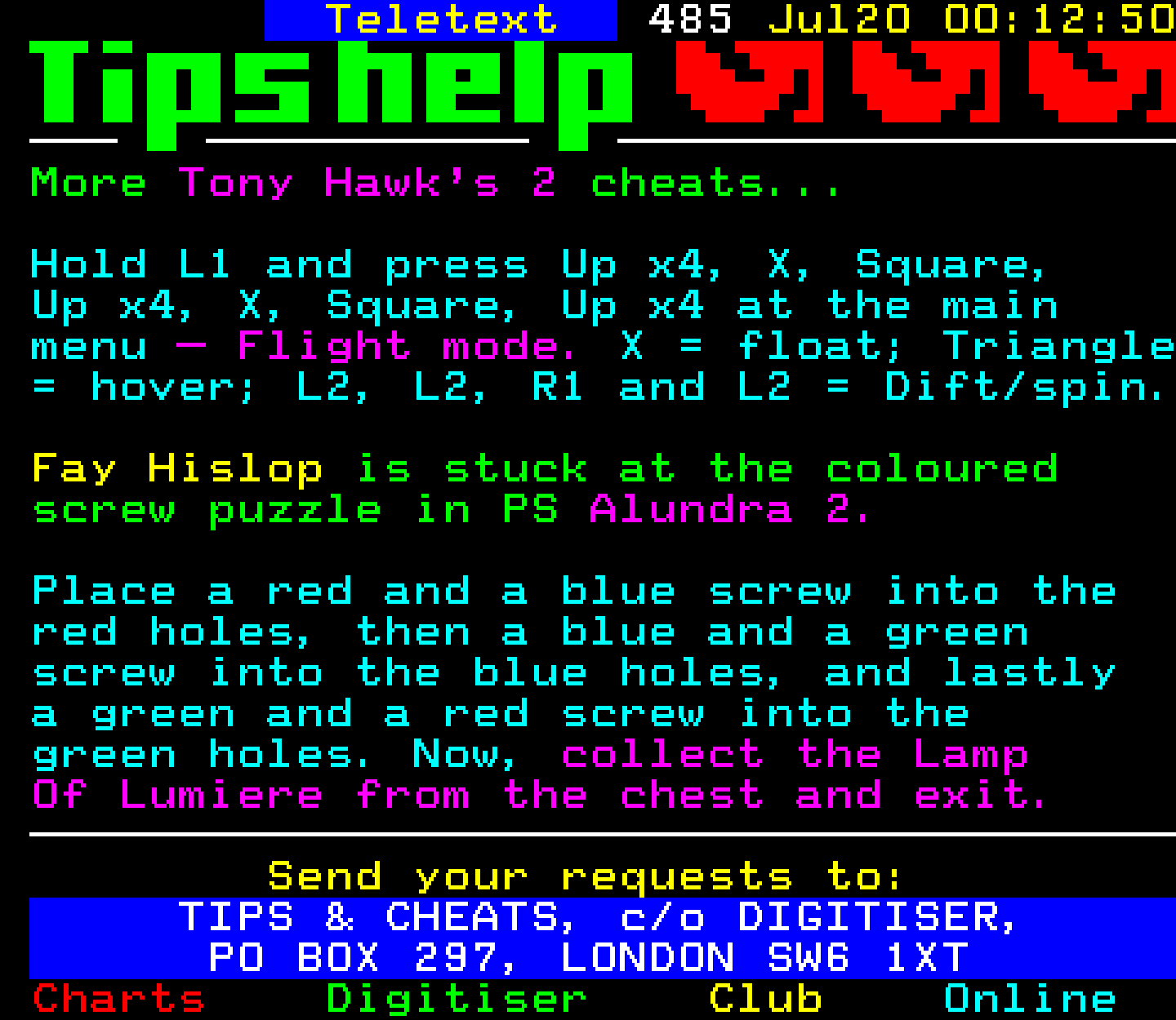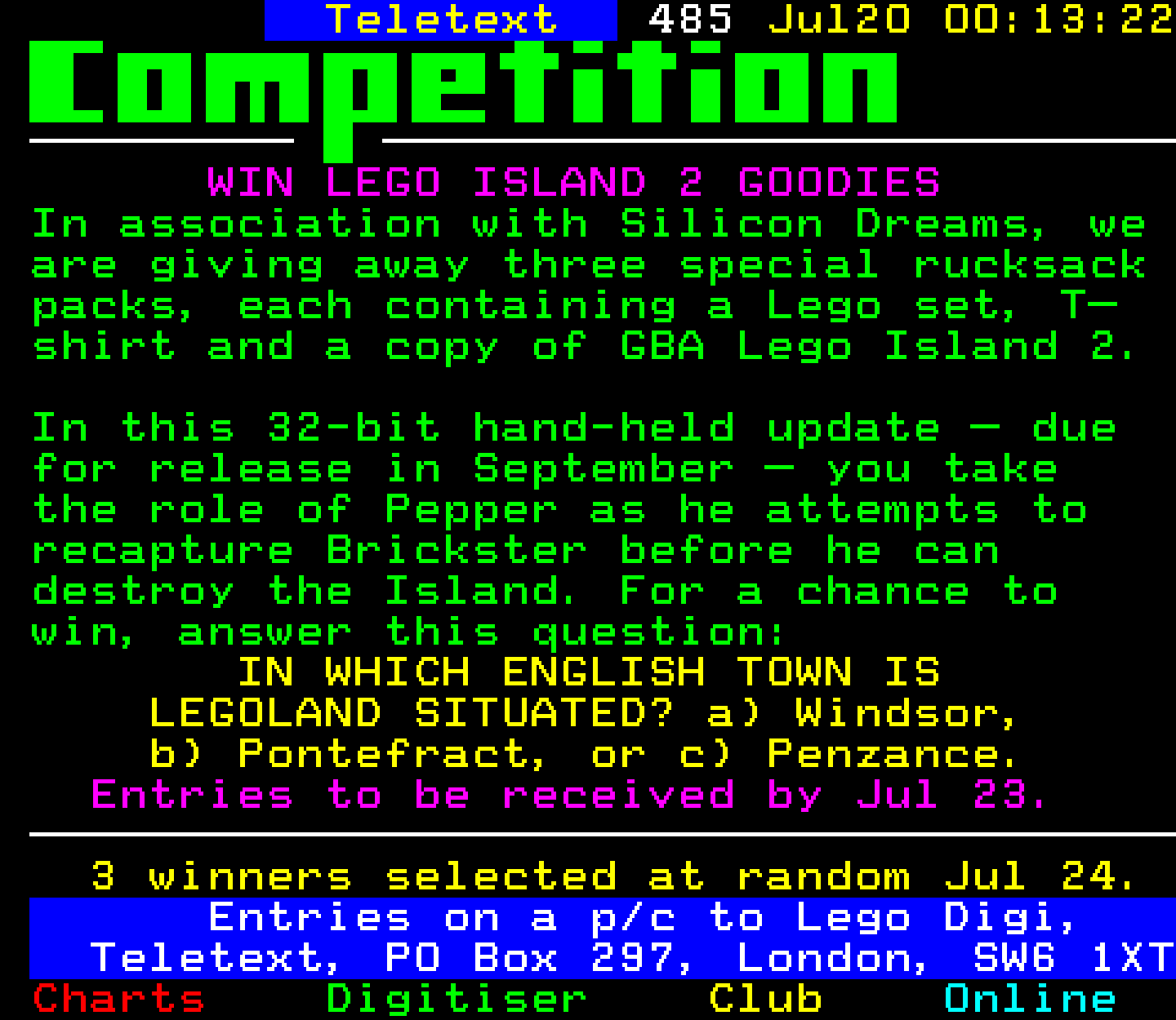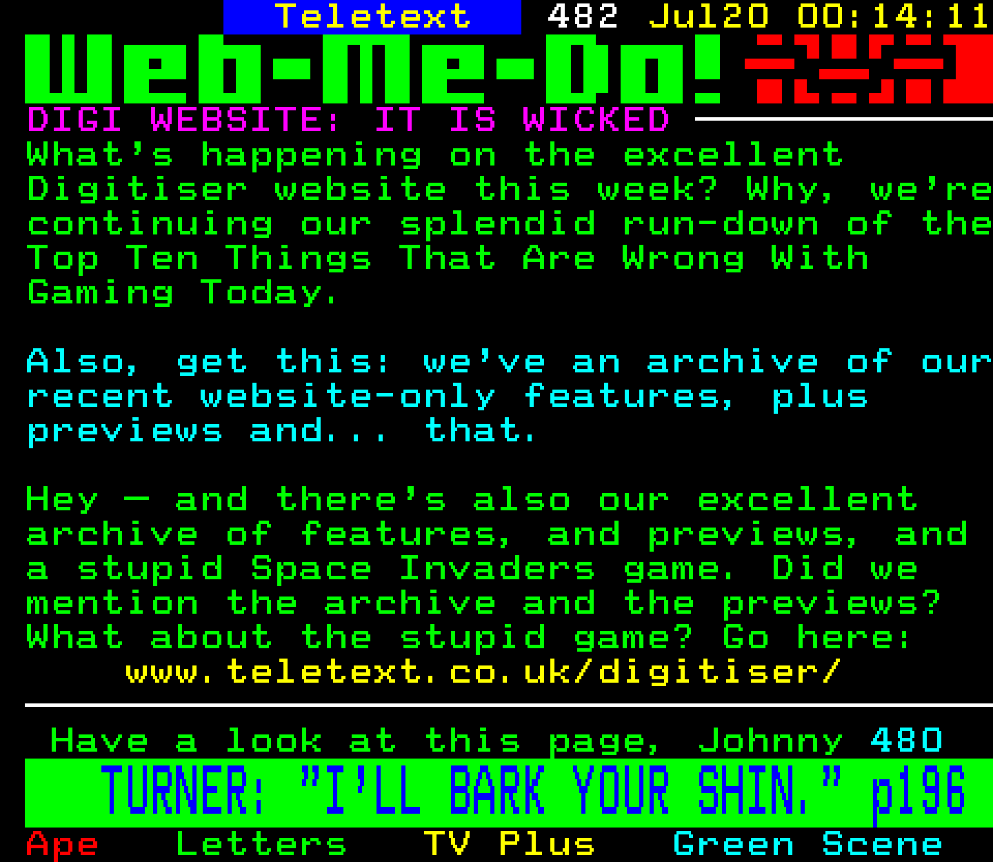 Do you have any full screenshot images of Digitiser that you'd like to see included in this archive? I'd just love to include them here - please email (superpage58@gmail.com) and the Digi community will be eternally grateful. Hey: even photos of your old TV showing the teletext page are good to be included!