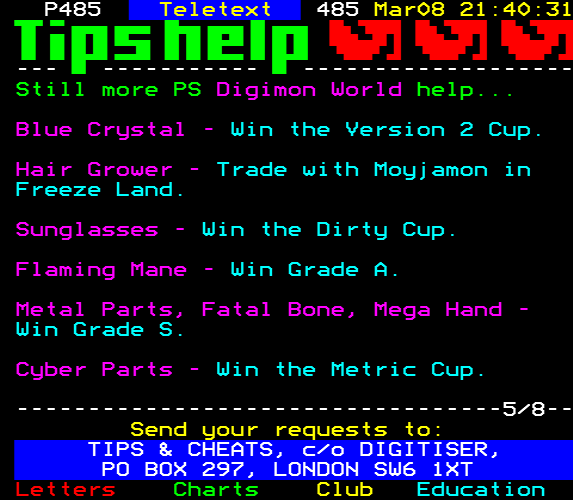 Do you have any full screenshot images of Digitiser that you'd like to see included in this archive? I'd just love to include them here - please email (superpage58@gmail.com) and the Digi community will be eternally grateful. Hey: even photos of your old TV showing the teletext page are good to be included!
