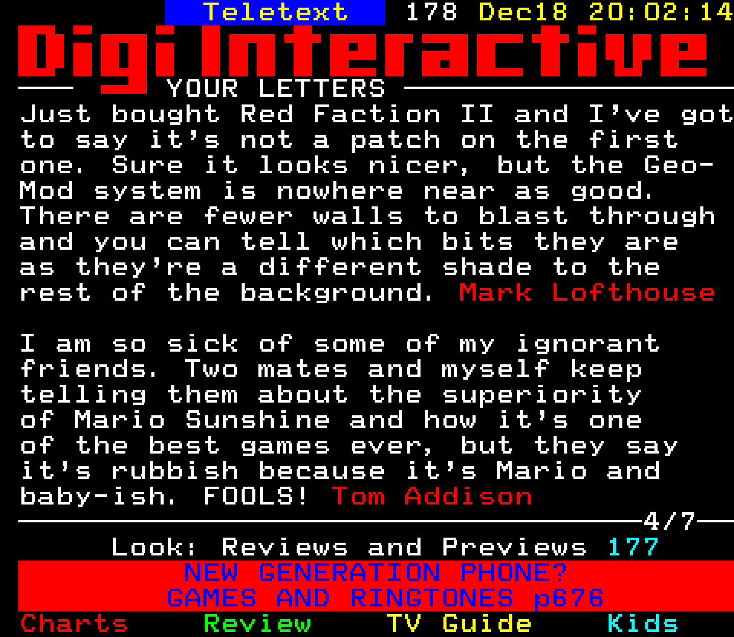Do you have any full screenshot images of Digitiser that you'd like to see included in this archive? I'd just love to include them here - please email (superpage58@gmail.com) and the Digi community will be eternally grateful. Hey: even photos of your old TV showing the teletext page are good to be included!