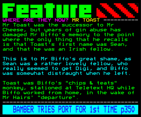Do you have any full screenshot images of Digitiser that you'd like to see included in this archive? I'd just love to include them here - please email (superpage58@gmail.com) and the Digi community will be eternally grateful. Hey: even photos of your old TV showing the teletext page are good to be included!