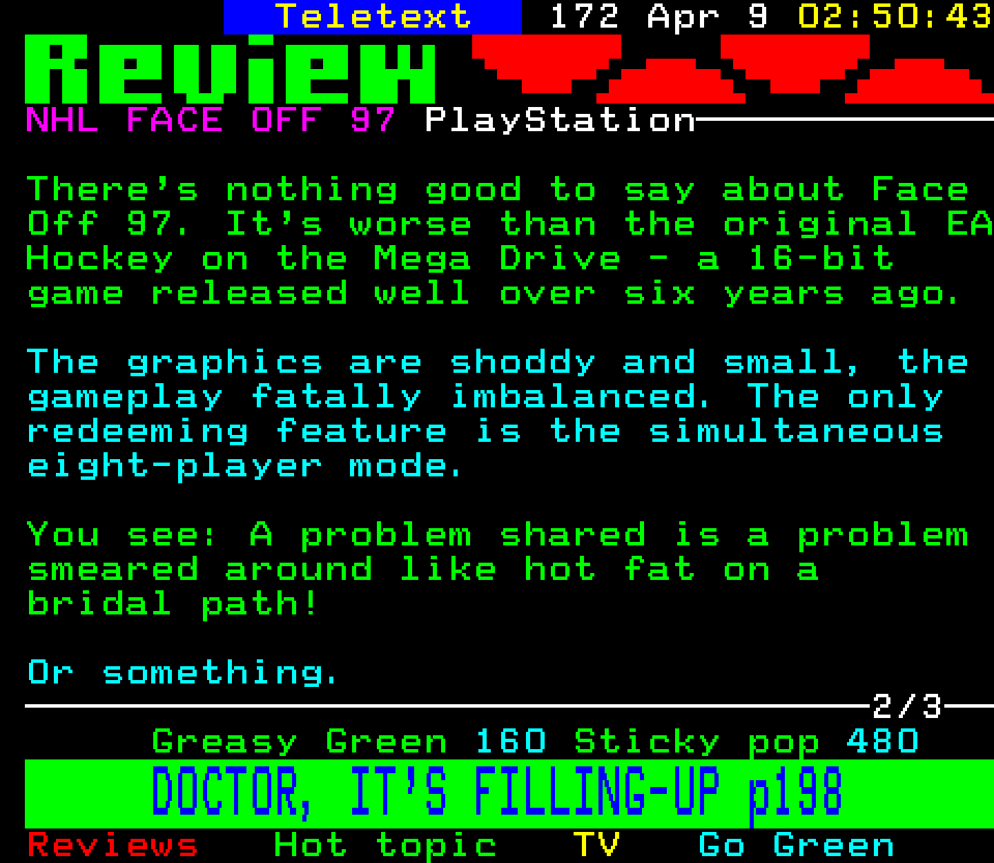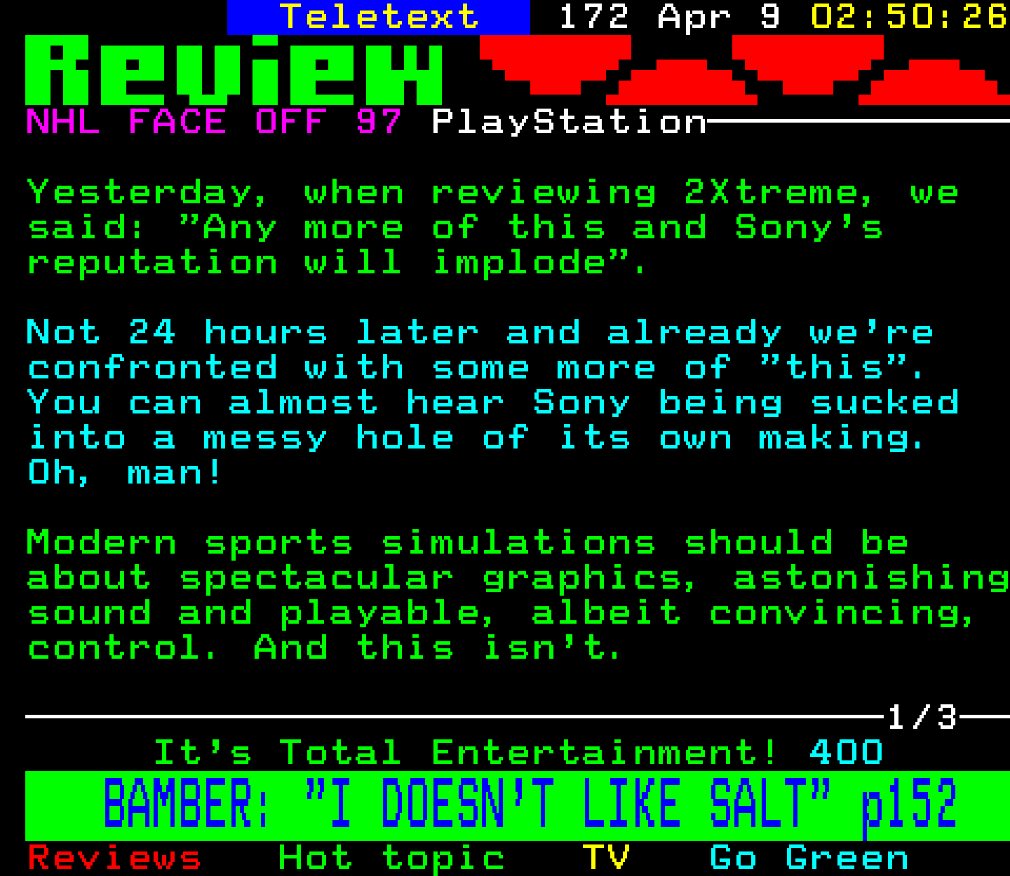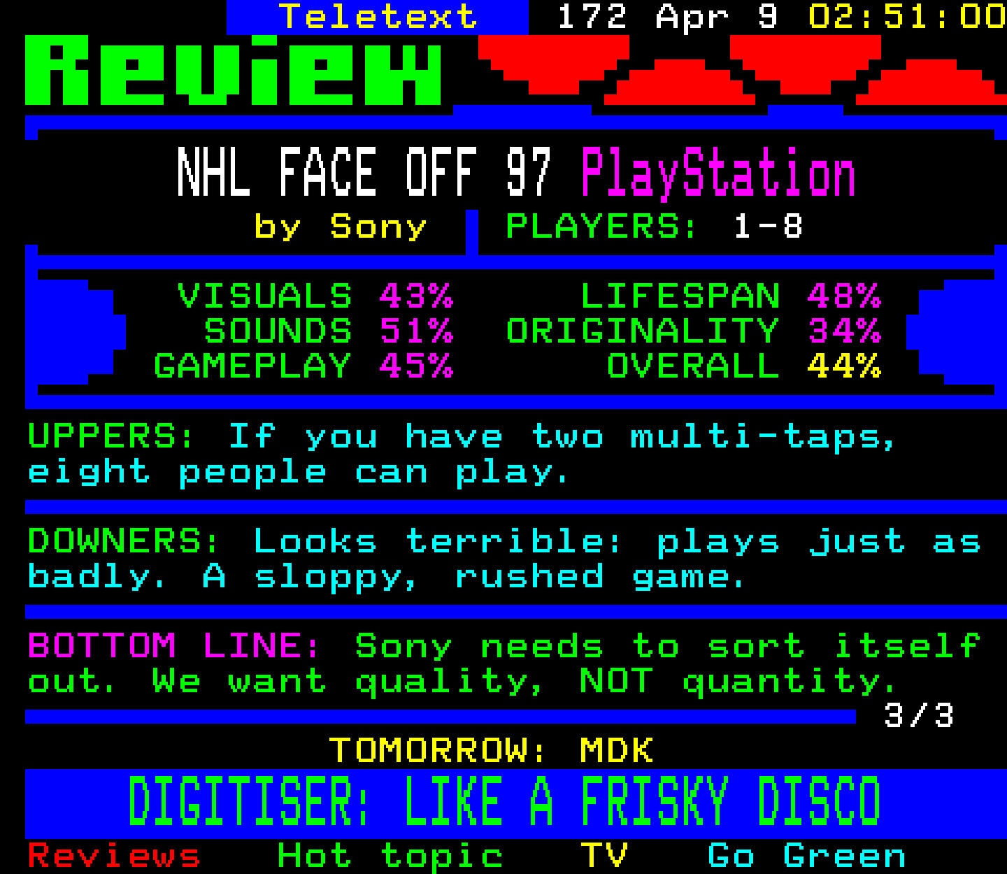 NHL Face-Off '97 - PlayStation, 8/4/97