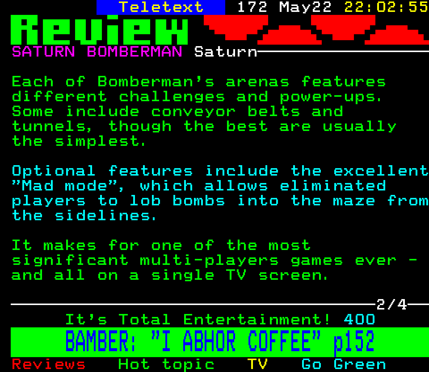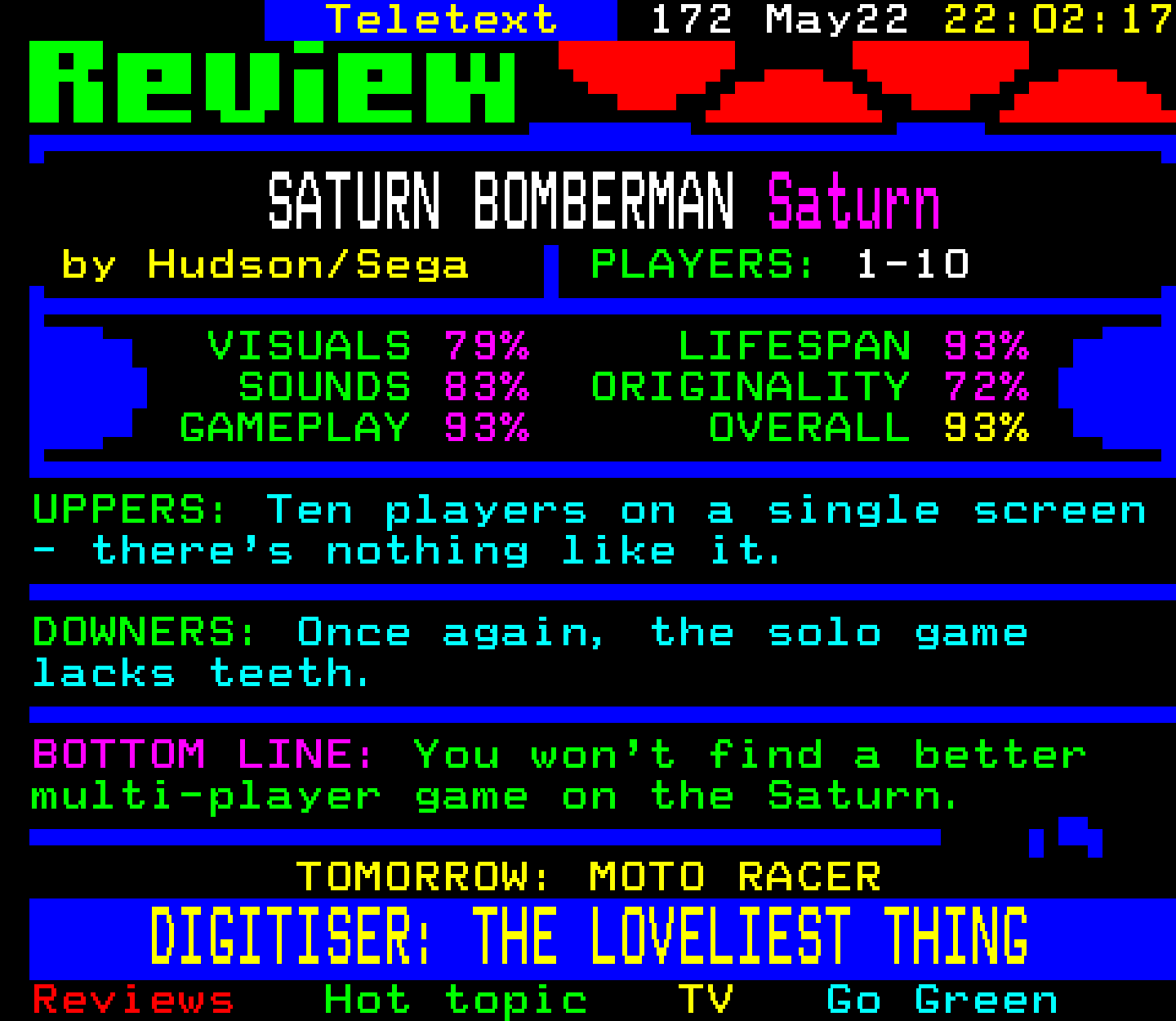 Saturn Bomberman - Saturn, 22/5/97